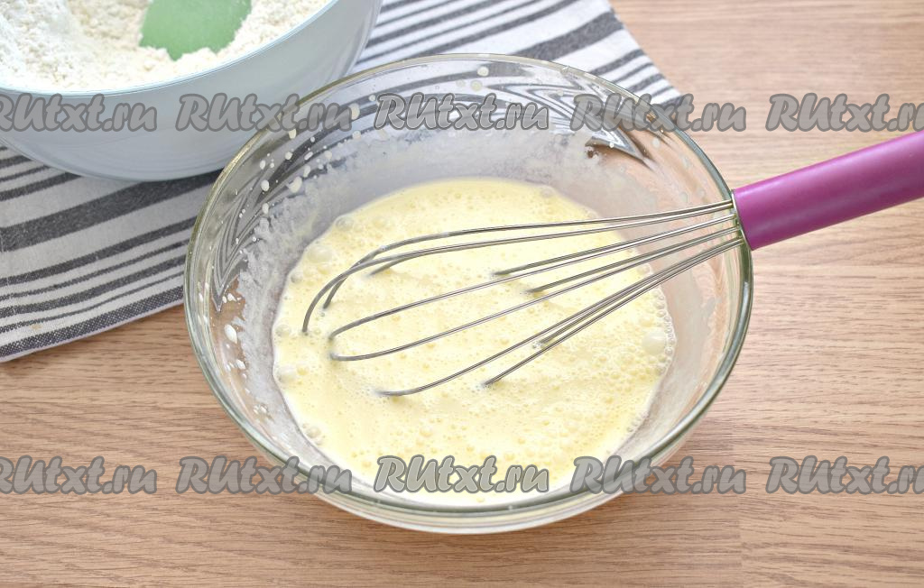 Венчиком перемешиваем молочно-масляную смесь до однородности (примерно, в течение 1 минуты).