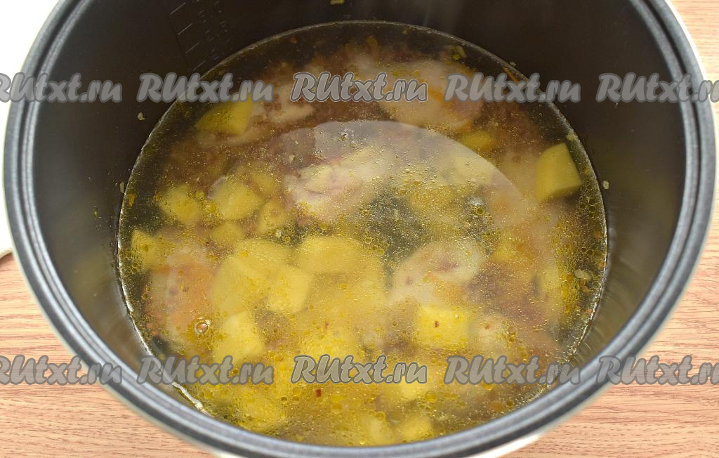 Вливаем в чашу 1,3-1,5 литра горячей кипячёной воды.