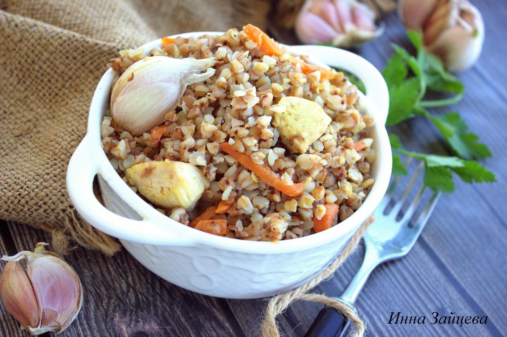 Наивкуснейший, ароматный плов из гречки с курицей подавайте с овощным салатом или домашними соленьями.
