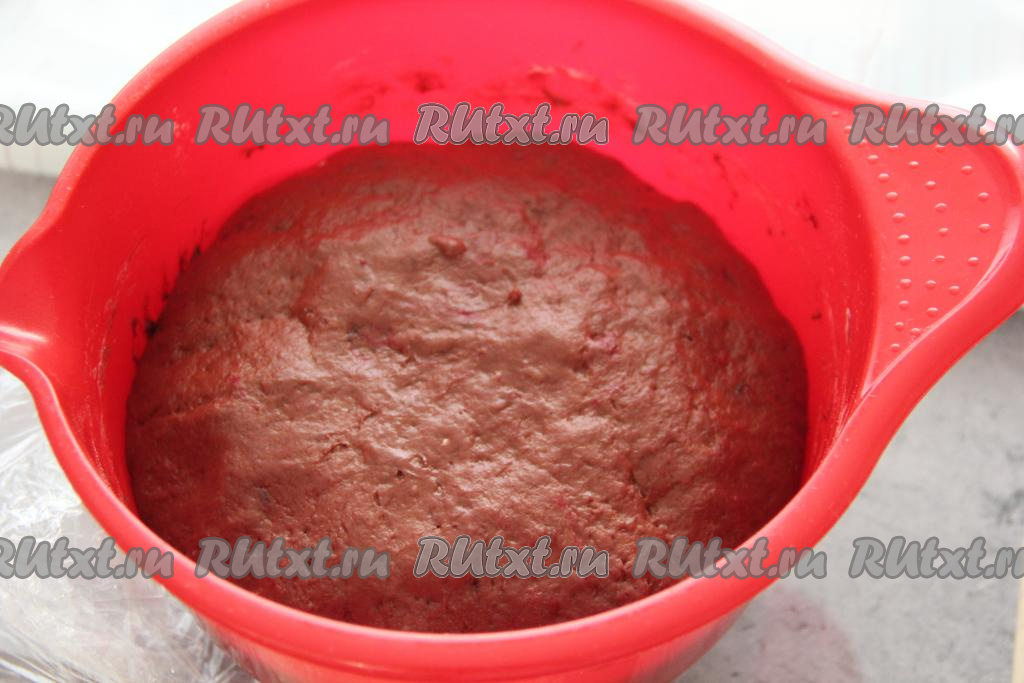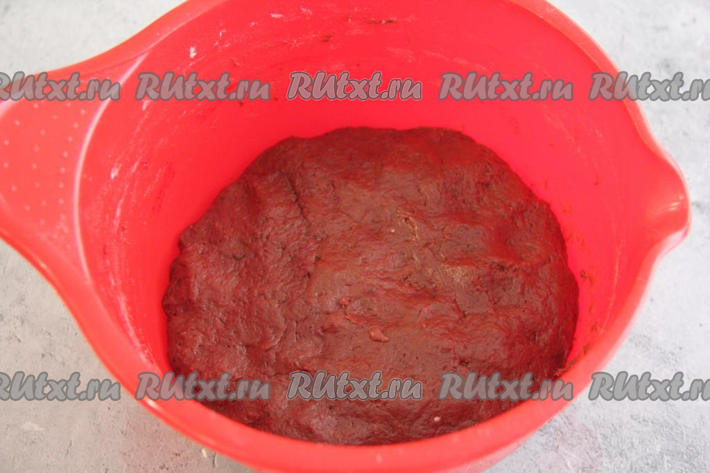 Перемешивать тесто сначала венчиком, затем вымесить его руками в течение 10 минут. Добавляя муку, ориентируйтесь на консистенцию теста, оно должно получиться эластичным и нежным. Оставить тесто в миске и убрать в тёплое место на 1 час.