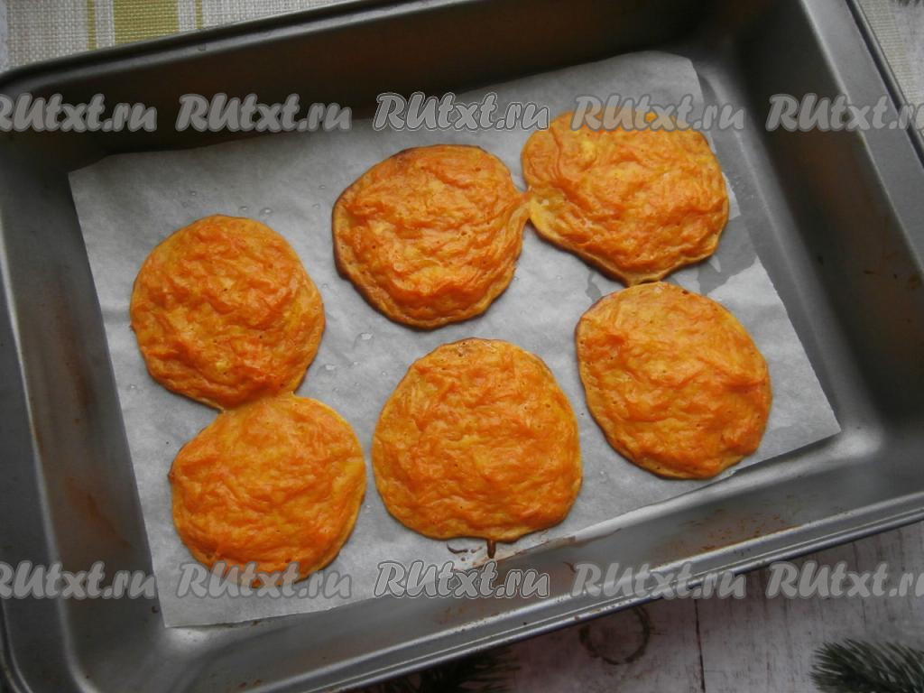 Форму застелить пергаментом. Для того чтобы оладушки точно не пристали к бумаге, можно дополнительно смазать пергамент растительным маслом. Ложкой выкладывать тыквенную массу на некотором расстоянии друг от друга в виде небольших оладий.
