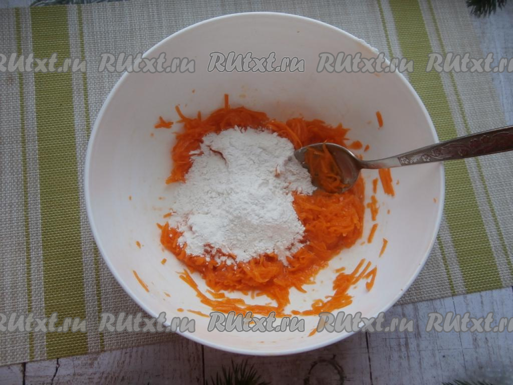 Хорошенько перемешать, всыпать муку. Муки может понадобиться больше или меньше, всё зависит от сочности тыквы.