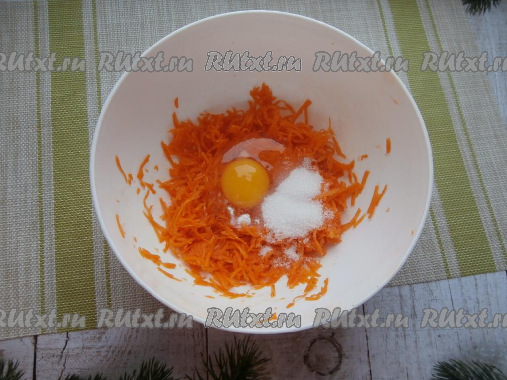 К натёртой тыкве добавить сахар, сырое яйцо, ванильный сахар, соль.