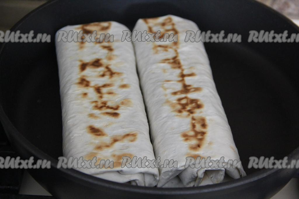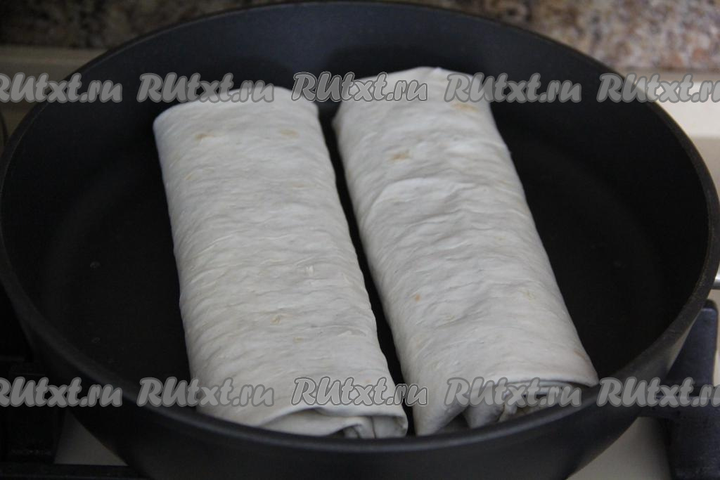 Сковороду разогреть и выложить два штруделя на сухую сковороду.