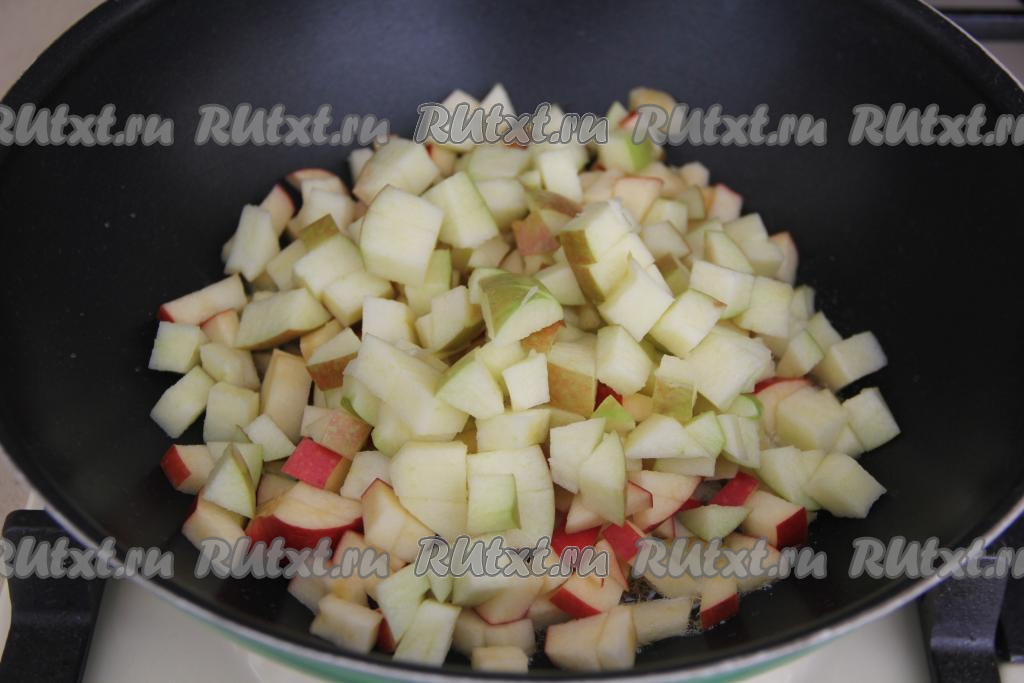 Добавить яблоки в сковороду.