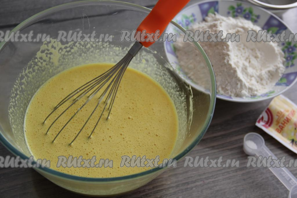 Перемешать массу венчиком до однородности.