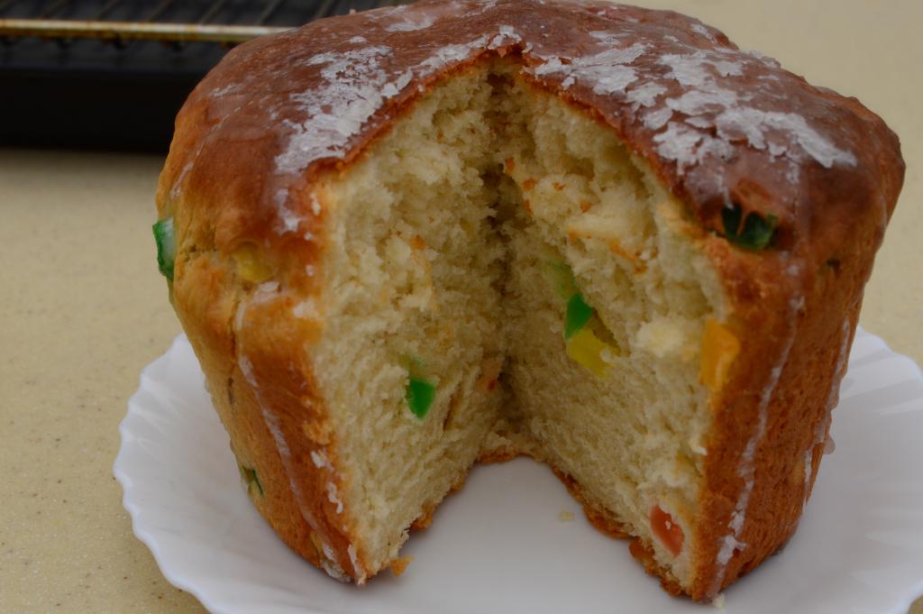 Готовность проверить сухой шпажкой (просто проколите куличи сверху сухой шпажкой, если шпажка осталась сухой, значит доставайте куличи из духовки). Готовые куличи остудить на решётке. Если вы выпекаете не в бумажных формочках, то выньте куличи из форм.