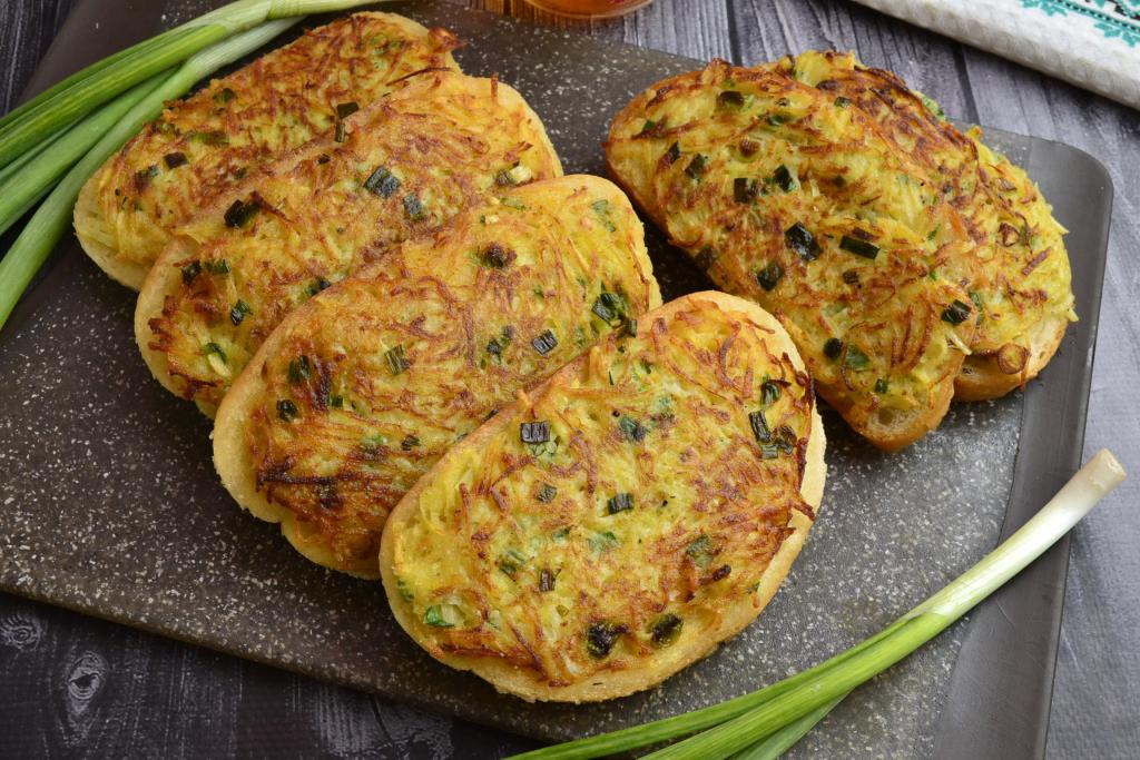 Необычайно вкусные, сытные горячие бутерброды, приготовленные с картошкой на сковороде, сразу подавать к столу.