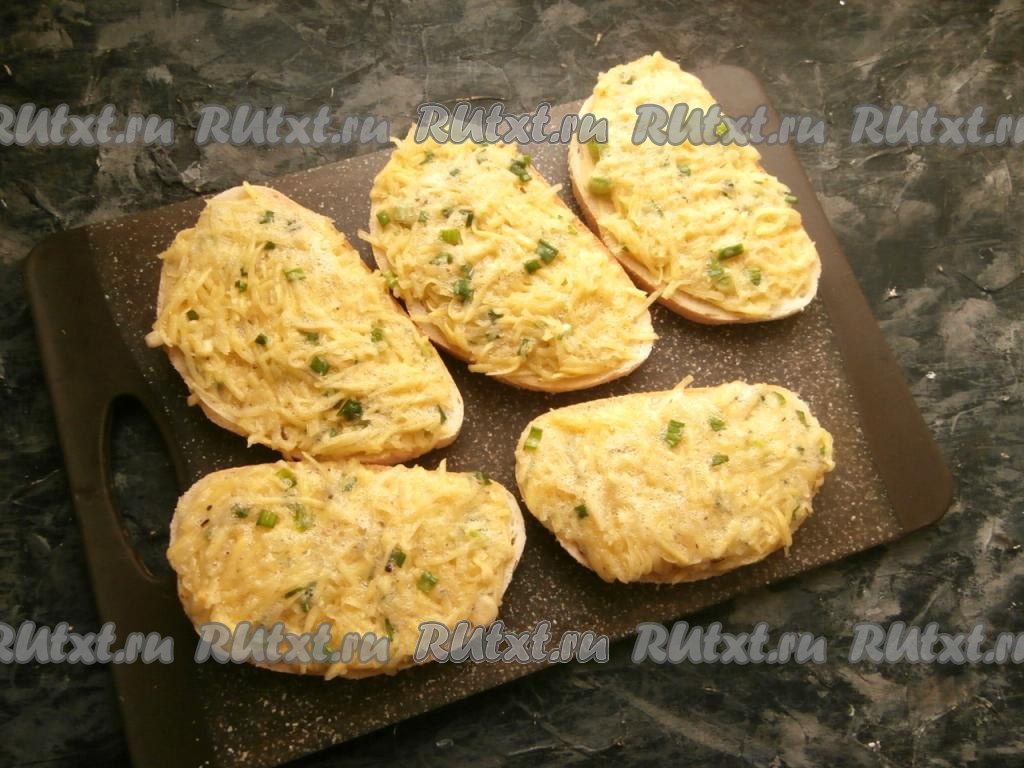 Ломти батона щедро намазать получившейся картофельной массой и оставить на 2-3 минуты.