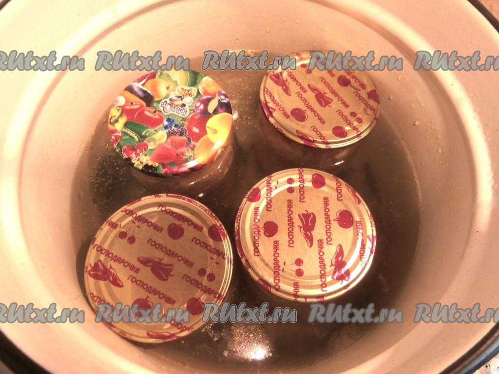 После стерилизации я выключила огонь, банки аккуратно достала из кастрюли, закрутила (или закатала) крышками. А затем снова поместила их в кастрюлю и оставила в горячей воде до полного остывания. Далее переставила их в холодильник на хранение.