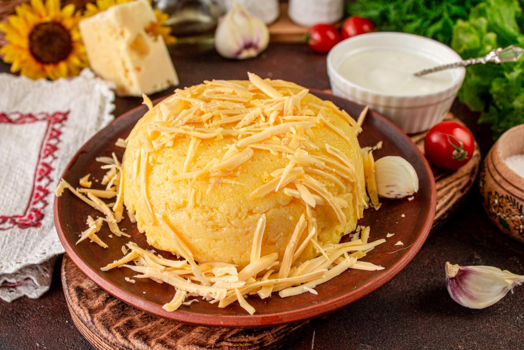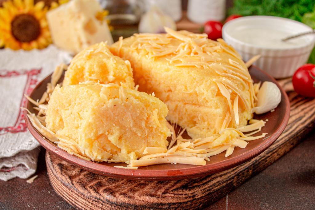 Мамалыгу с сыром подавайте порционно. Блюдо получается с насыщенным сливочным вкусом. Многие предпочитают такую мамалыгу в горячем виде. Но она невероятно вкусна и после остывания, особенно со сметаной.