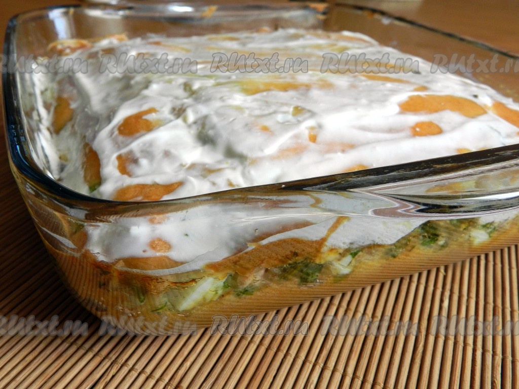Выпекать рыбный пирог с семгой в разогретой до 190 градусов духовке 25-30 минут. Готовый пирог еще горячим смазать сметаной. Остудить пирог в форме.