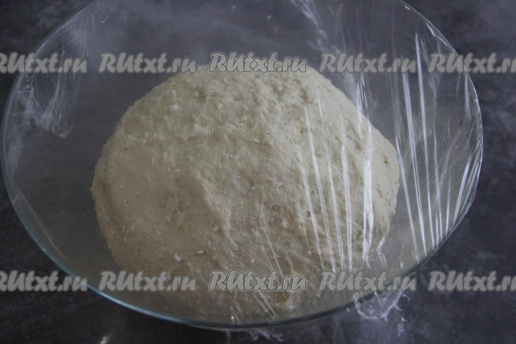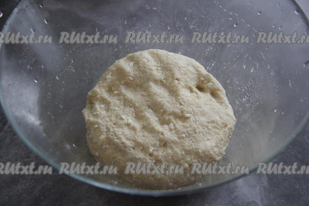 Вымешивать минут 10. Тесто по консистенции должно быть податливым, не липнущим к рукам. Затем сформировать из теста колобок и оставить в миске, прикрыв полотенцем, на 1,5 часа в тёплом месте.