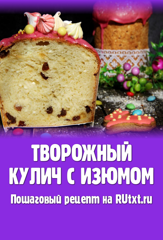 Скоро праздник Светлой Пасхи и я предлагаю рецепт творожного кулича с начинкой из изюма. Кулич из творожного дрожжевого теста получается очень вкусным, высоким, красивым и слоистым. При нарезании не крошится и не сыпется. Глазурь можно использовать любую, можно даже купить её в магазине (уже готовую). Из данного количества ингредиентов получается 2 больших кулича. Творожный кулич долго сохраняет свою свежесть и мягкость.