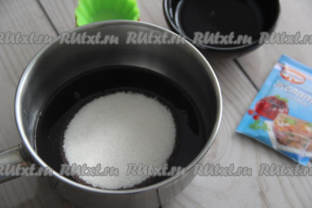 Снять сотейник с огня и добавить в него набухший желатин, перемешать до полного растворения желатина.