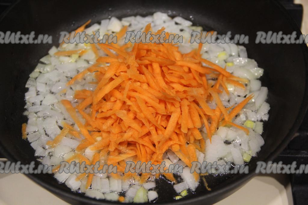 Обжарить лук с морковкой до мягкости (на это потребуется 5-6 минут), иногда помешивая овощи.