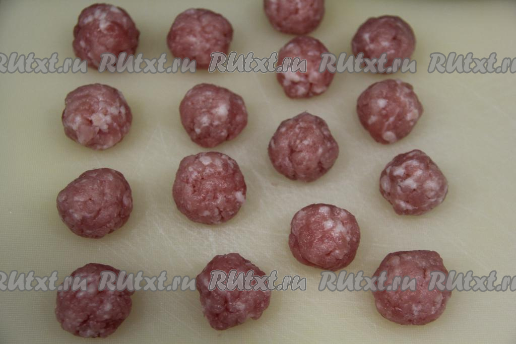Из куриного фарша сформировать шарики любого размера - фрикадельки. Если сформировали больше фрикаделек, чем вам нужно для супа, тогда лишние фрикадельки выложите на доску (или на тарелку) в один слой, заморозьте в морозилке, уберите в пакет и храните в морозилке, а затем используйте для варки супа в следующий раз.