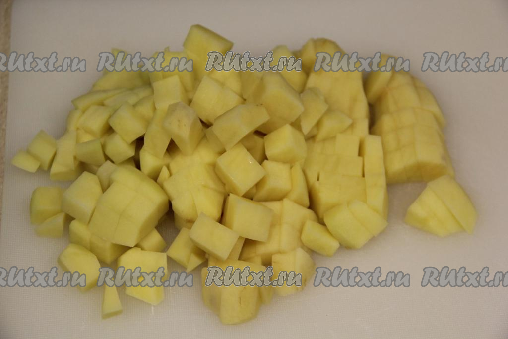Очищенные картошины нарезать на кубики.