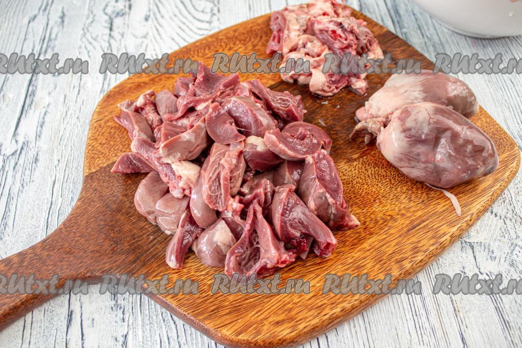 Если у вас сердечки индейки замороженные, тогда предварительно их разморозьте.