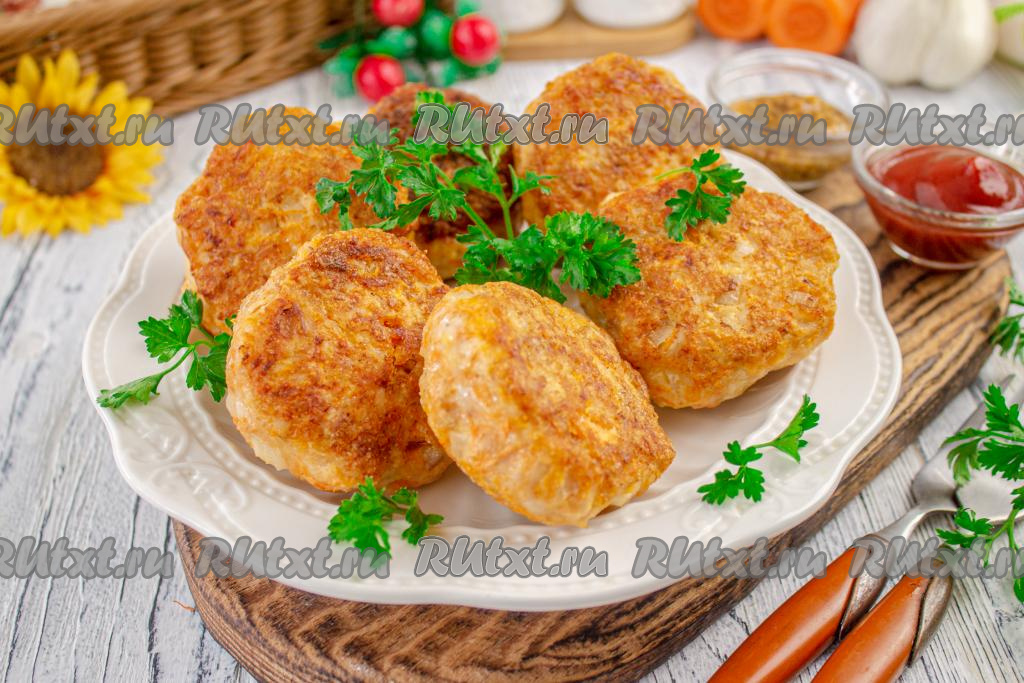 Котлеты, приготовленные из куриного мяса с добавлением в фарш лука и моркови, - простое и доступное блюдо на каждый день. Котлетки получаются и аппетитными, и вкусными, и ароматными. Для их приготовления потребуется совсем небольшой набор продуктов, который найдётся почти у каждой хозяюшки дома. Подавать их можно с любым гарниром на ваш вкус. Мне нравится кушать такие куриные котлетки с овощным салатом, отварными крупами или тушёными овощами.