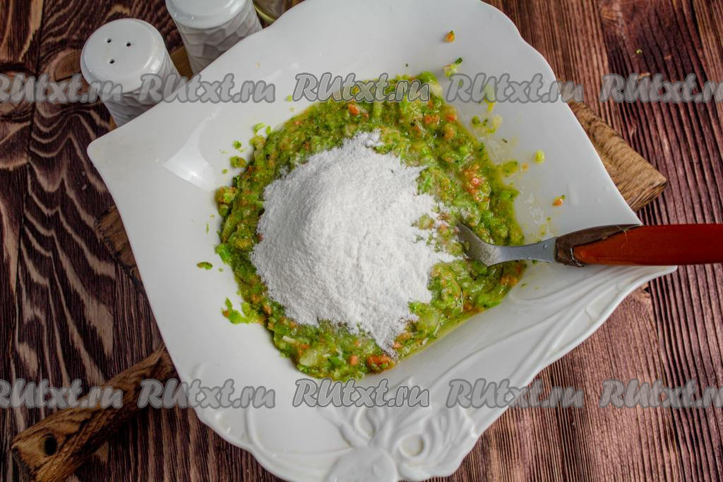 Добавьте крахмал. Вместо крахмала можете взять пшеничную или рисовую муку, но с крахмалом оладьи получаются более нежными.