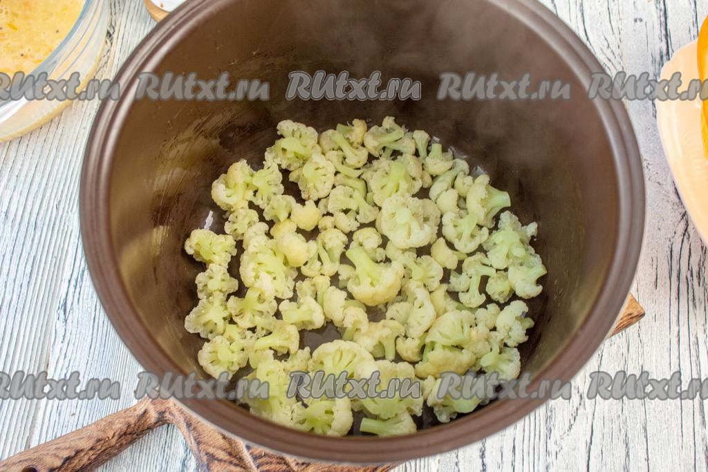 Смажьте растительным маслом чашу мультиварки, выложите цветную капусту.