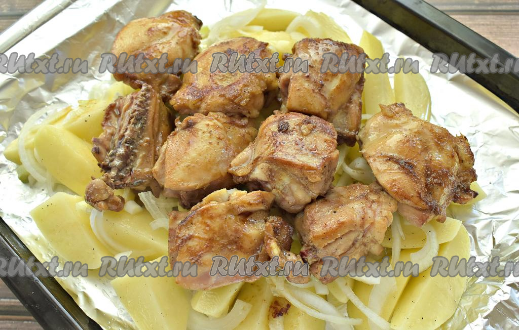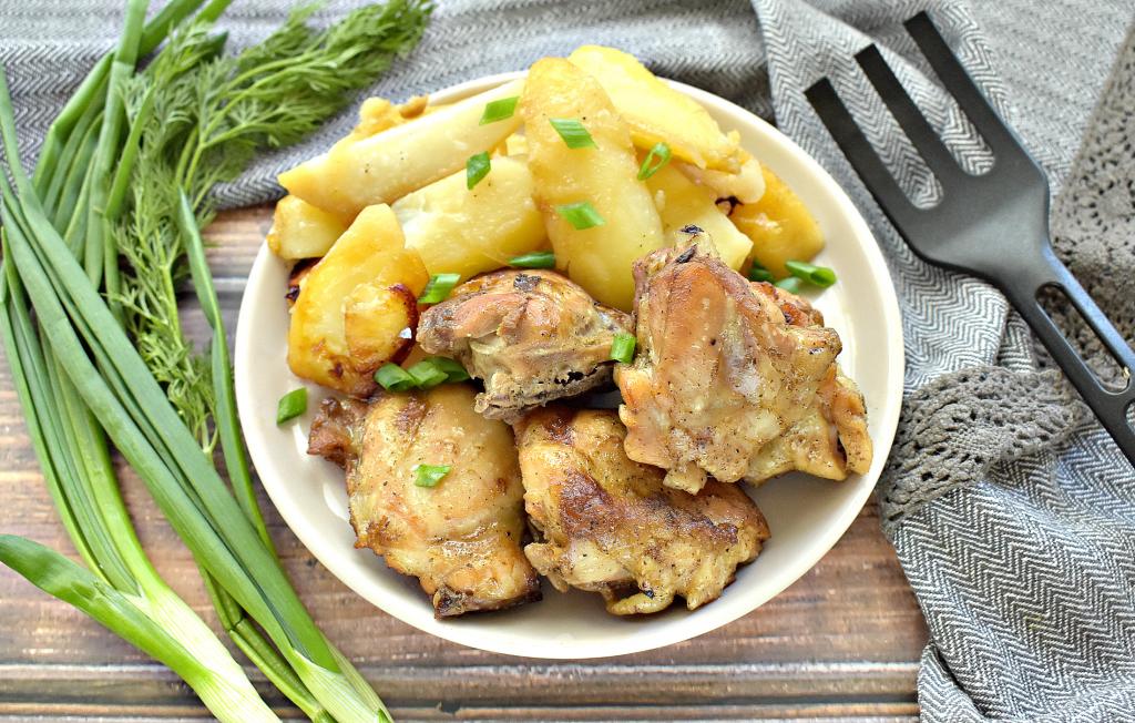 Картошка и курица - это, пожалуй, самый популярный и востребованный вариант ингредиентов для приготовления вкусного домашнего блюда. Предлагаю запечь кусочки курицы с картошкой в фольге в духовке. Для этого рецепта можно взять любые части курочки (я готовила куриные бёдра). И курица, и картошка, которая запекается вместе с куриным мясом, получаются, сочными, вкусными и аппетитными. Это сытное блюдо разнообразит будничный рацион, подойдёт оно и для праздничного застолья.