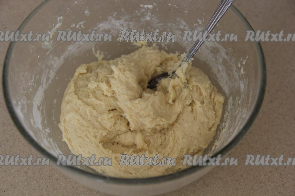 Тесто должно получиться не густым, тягучим, чем-то напоминающим заварное тесто.