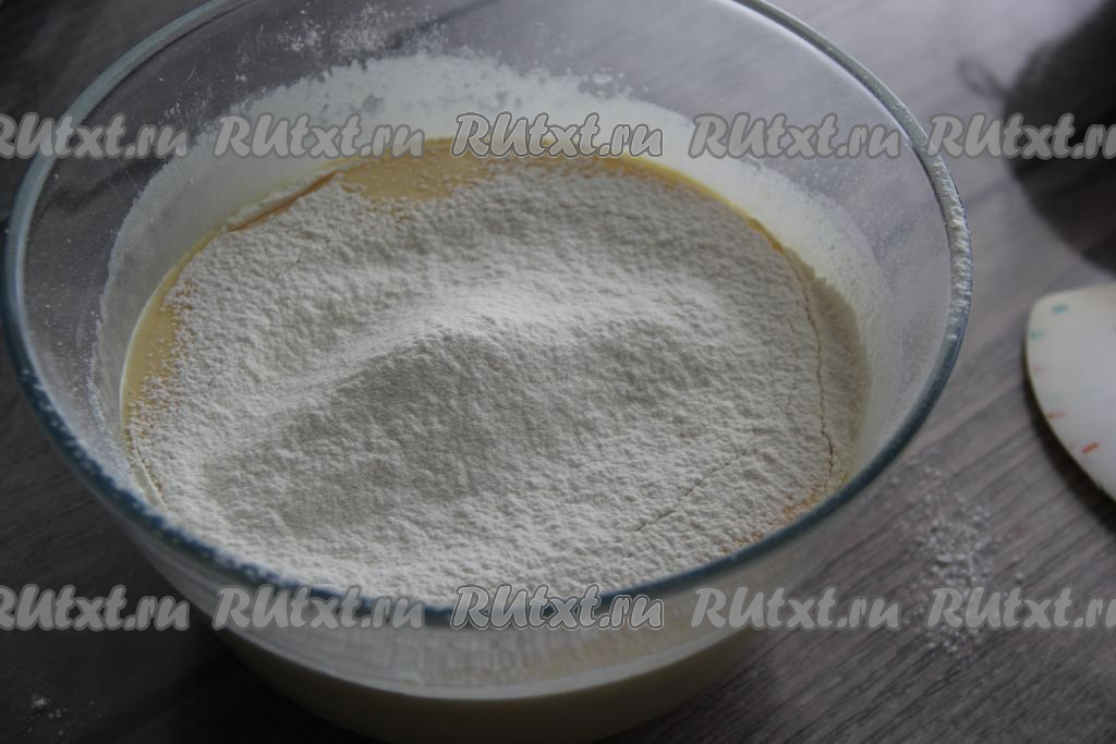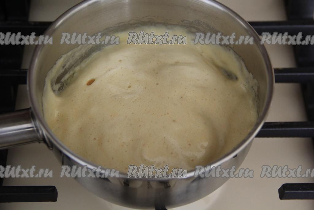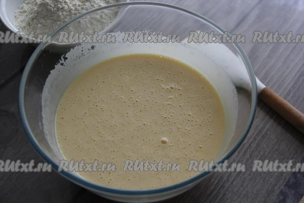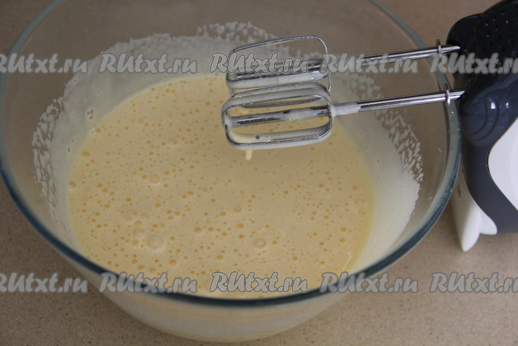 Яично-сахарная смесь должна посветлеть и увеличиться в объёме.