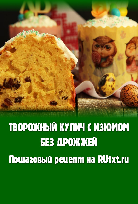 Если вы не ладите с дрожжевым тестом или просто не хотите с ним возиться, тогда предлагаю рецепт творожных куличей с изюмом, которые замешиваются без добавления дрожжей. Куличики получаются очень вкусными, высокими, с пористым мякишем. Такие куличи непременно украсят праздничный пасхальный стол, порадуют своим вкусом вас и ваших близких. Готовую выпечку можно покрыть сахарной или белковой глазурью.