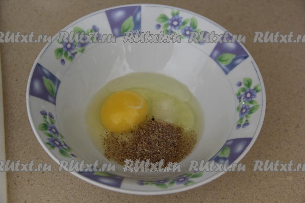 Для приготовления кляра в глубокой тарелке соединить яйцо, соль, 1 столовую ложку растительного масла, всыпать специи, перемешать венчиком.
