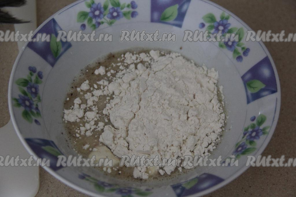 Затем всыпать муку и перемешать кляр до однородности.