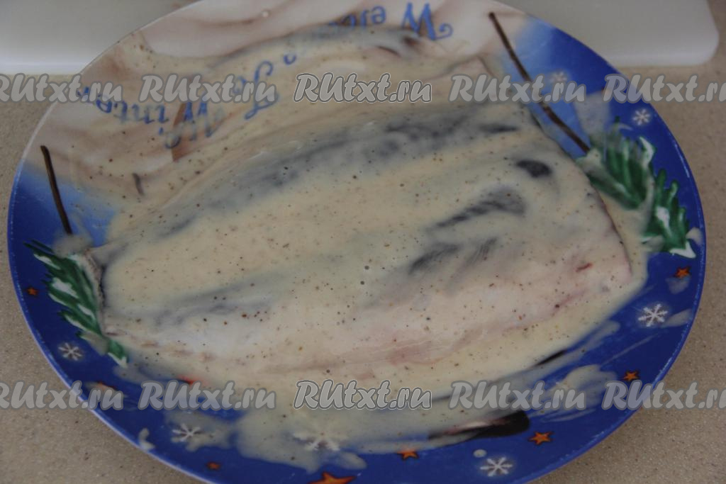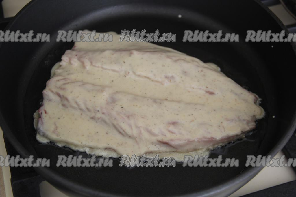 Филе можно нарезать на кусочки. Я обмакнула в кляр целое филе. Кляр должен покрыть рыбку со всех сторон.