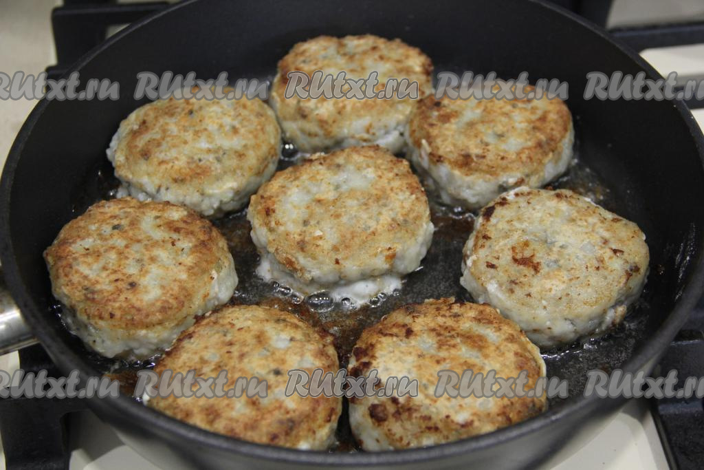 Жарить рыбные котлетки на среднем огне с двух сторон до золотистого цвета.