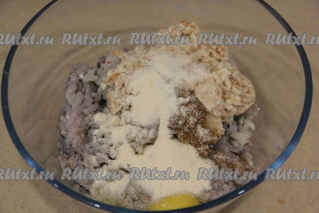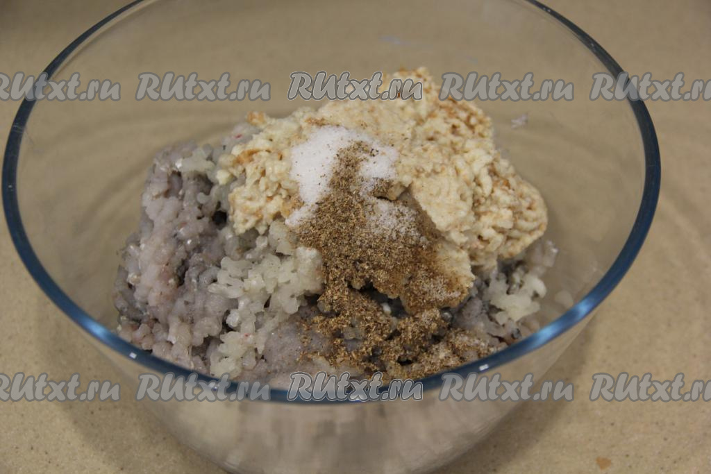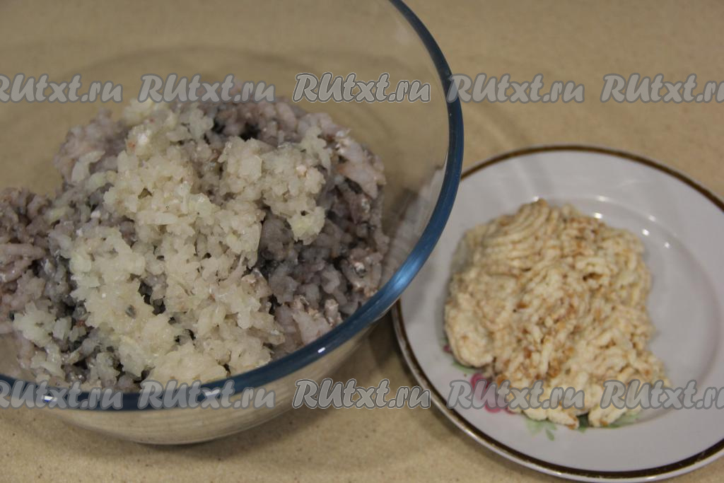 Белый хлеб отжать от лишнего молока и тоже пропустить через мясорубку.