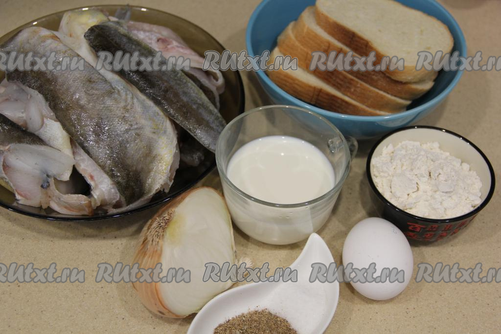 Подготовить продукты. Если у вас целые замороженные тушки наваги, их нужно вначале разморозить при комнатной температуре, а затем удалить из брюшка все внутренности, отрезать головы и плавники, аккуратно отделить рыбное филе от костей. По желанию, кожу можно снять. Для формирования котлет потребуется 950 грамм филе наваги. Белый хлеб замочить в молоке. Почистить луковицу.