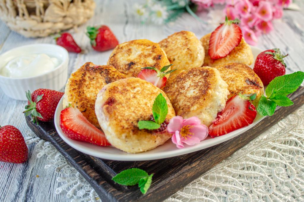 Переложите готовые вкусные, аппетитные сырники на тарелку и подавайте к столу.