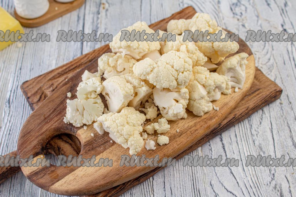 Подготовьте необходимые ингредиенты для соуса. Я готовила соус со свежей цветной капустой, которую можно смело заменить на замороженную и отваривать в молоке, не размораживая. Молоко, по желанию, можно заменить на сливки жирностью 10-15%, тогда соус приобретёт более сливочный вкус.