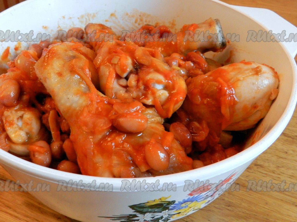 Курица с фасолью, приготовленные в томатном соусе - очень вкусное блюдо. Для приготовления курицы с фасолью в томатном соусе можно использовать как сухую, так и консервированную фасоль.