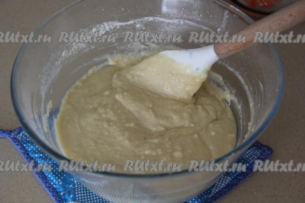 Перемешать тесто лопаткой до однородного состояния.