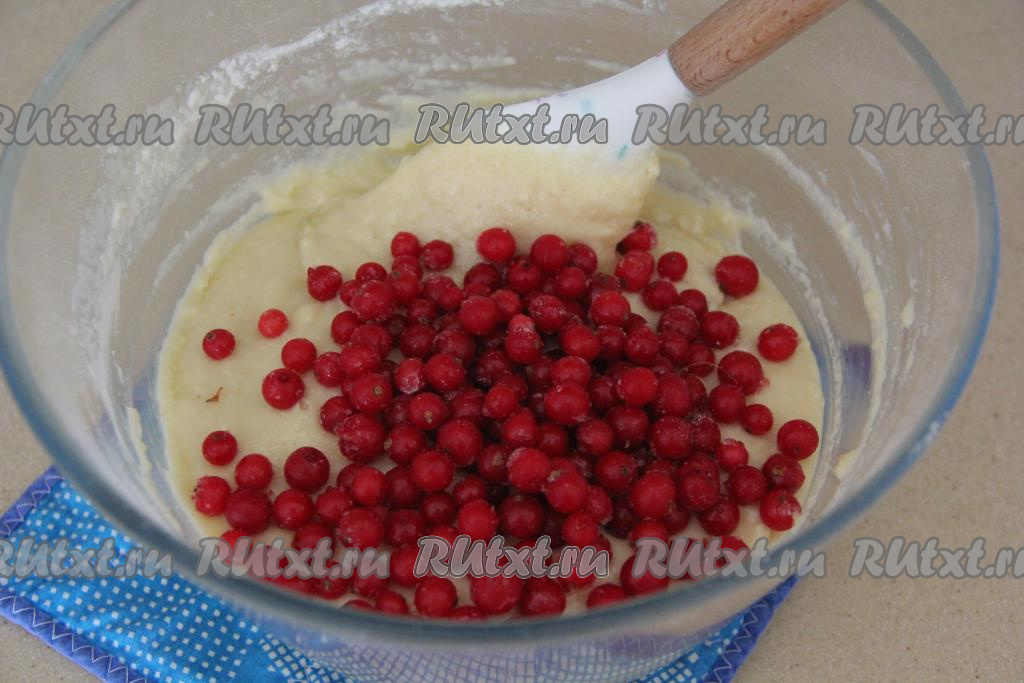 Тесто получится не очень густым. Всыпать подготовленные ягоды, перемешать.