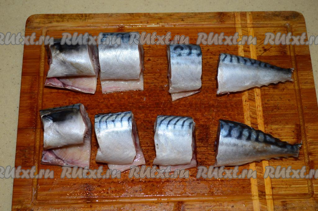 Разрежьте каждую скумбрию на 4-5 порционных кусочков.