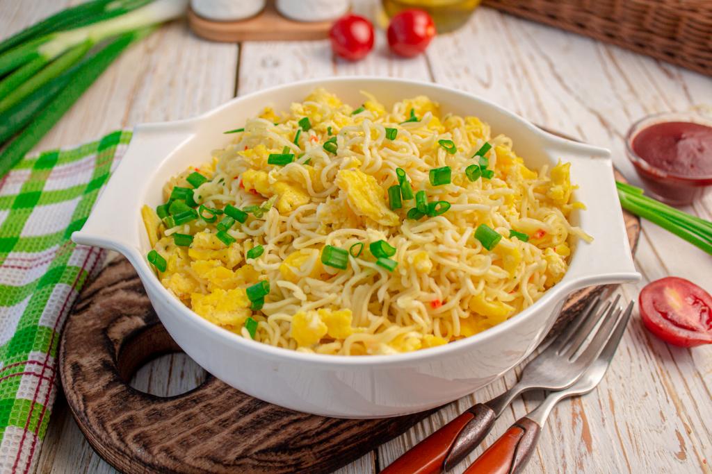 Сегодня у нас вкусный экспресс-вариант блюда из лапши быстрого приготовления "Доширак" с яйцами. Лапша запаривается, а потом обжаривается на сковороде вместе с яйцами. На приготовление у вас уйдёт максимум 10-15 минут, а в результате на столе будет очень вкусное, аппетитное и сытное блюдо.