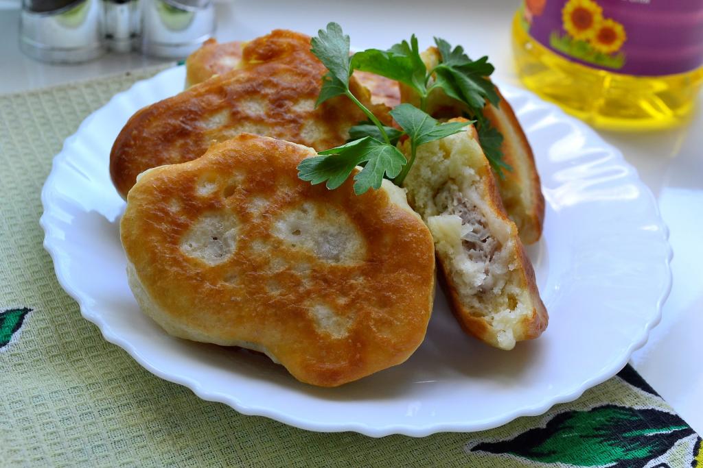 Жарить далее на сковороде до румяности другой стороны. Постепенно пожарить все беляшики с мясным фаршем. Очень пышные, сочные и вкусные ленивые беляши, замешанные на кефире, готовы, сразу подаём к столу.