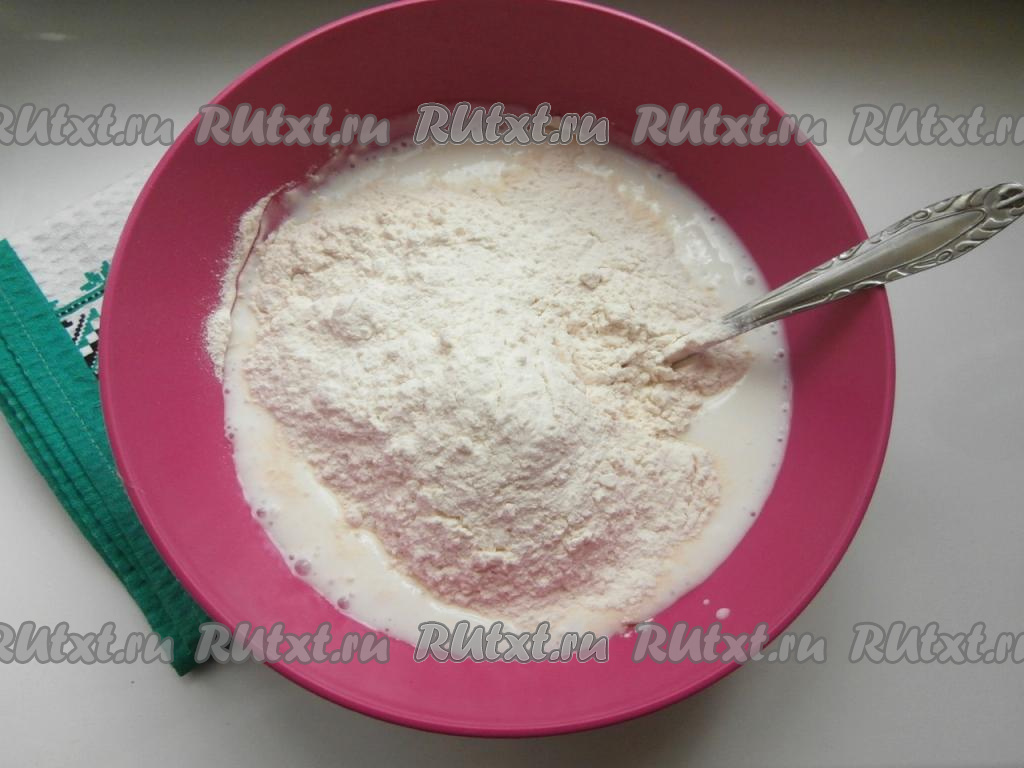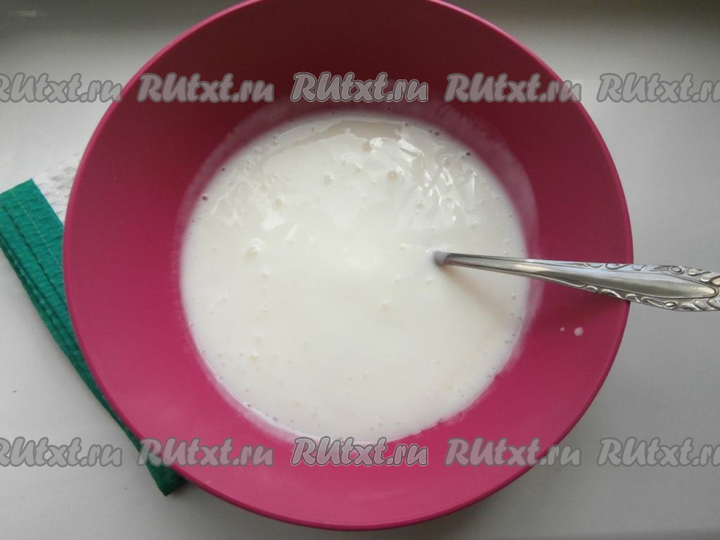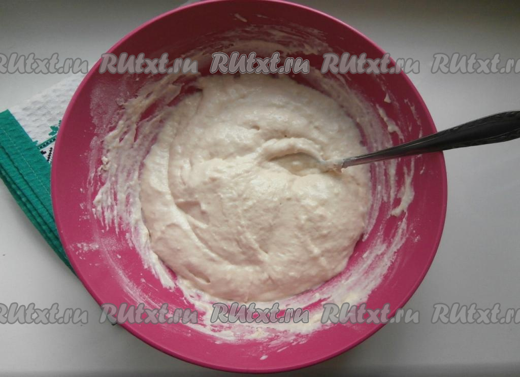 Перемешать ложкой, тесто должно получиться в меру густым, однородным, будет похожим на тесто для оладьи.