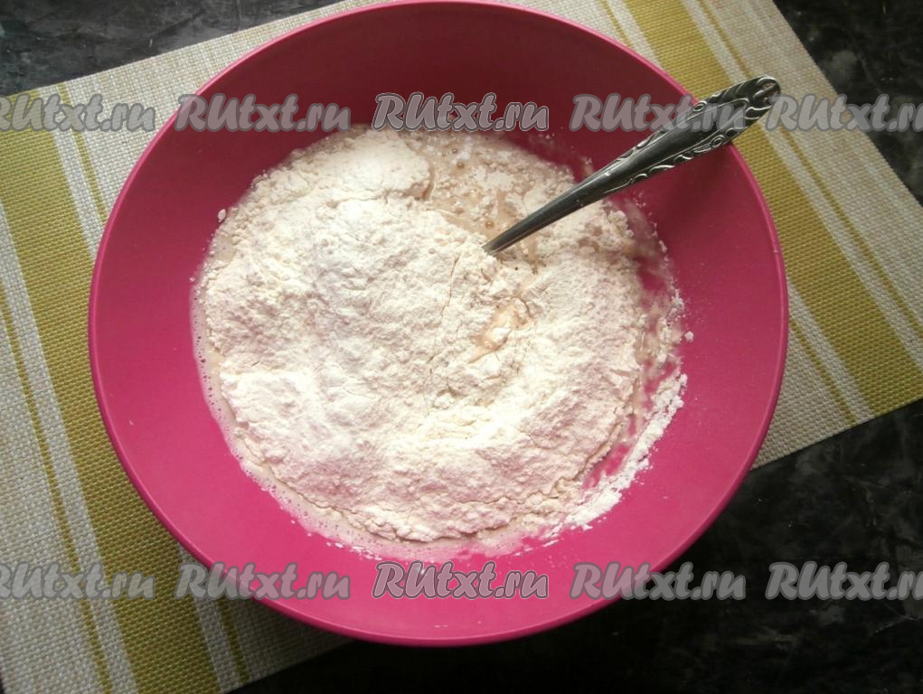 Затем всыпать в миску частями муку.