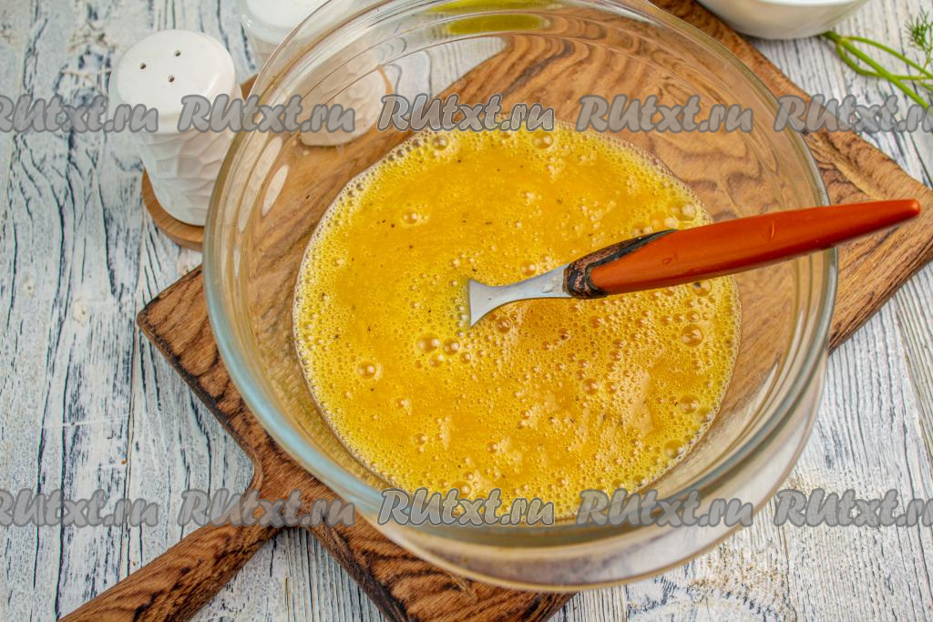 Перемешайте яичную смесь вилкой (или венчиком), чтобы желток соединился с белком. Взбивать миксером не нужно!