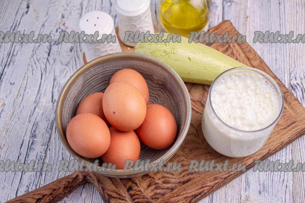 К этому времени кабачок пустит сок, который необходимо отжать. Натёртый кабачок, отжатый от лишней жидкости, добавьте в яично-молочную смесь и перемешайте.
