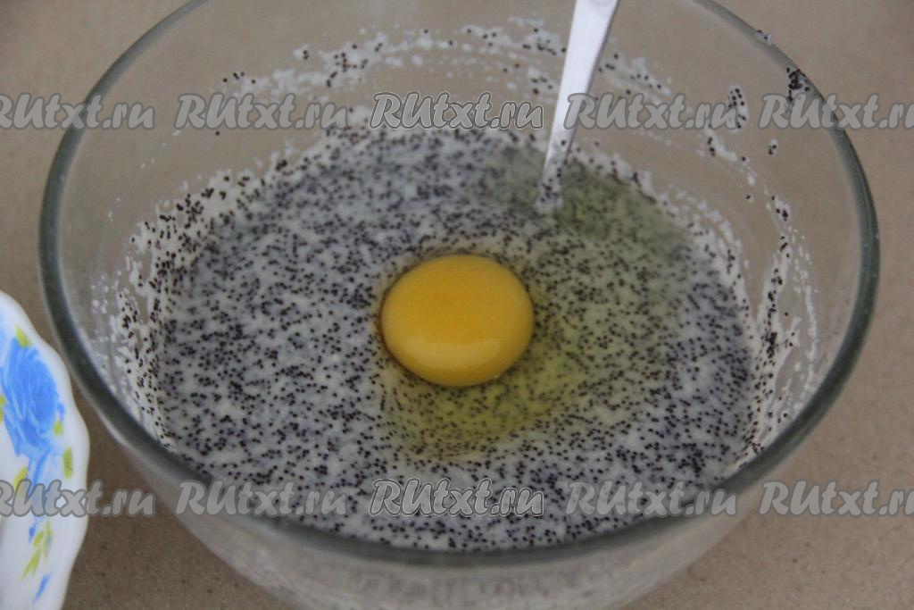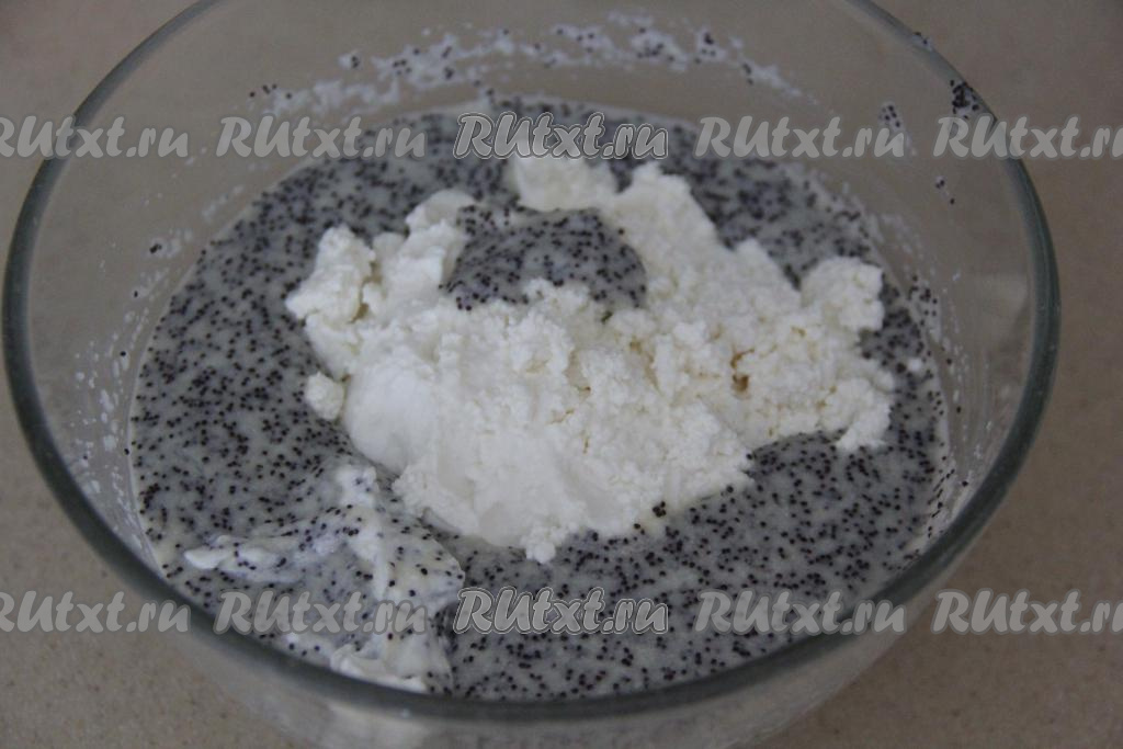 Затем добавить творог, хорошо перемешать творожно-маковую массу вилкой.