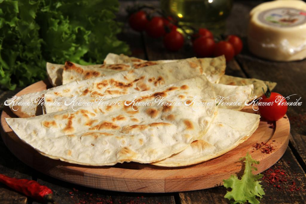 Сковороду разогреть, сделать огонь средним. Выложить кутабы на сухую сковороду.